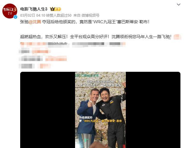 《飞驰人生3》尾声,有一位特殊的嘉宾为张驰、林臻东代表的中国车手颁发荣誉,他就是WRC世界拉力锦标赛第一人,九冠王得主塞巴斯蒂安·勒布。
