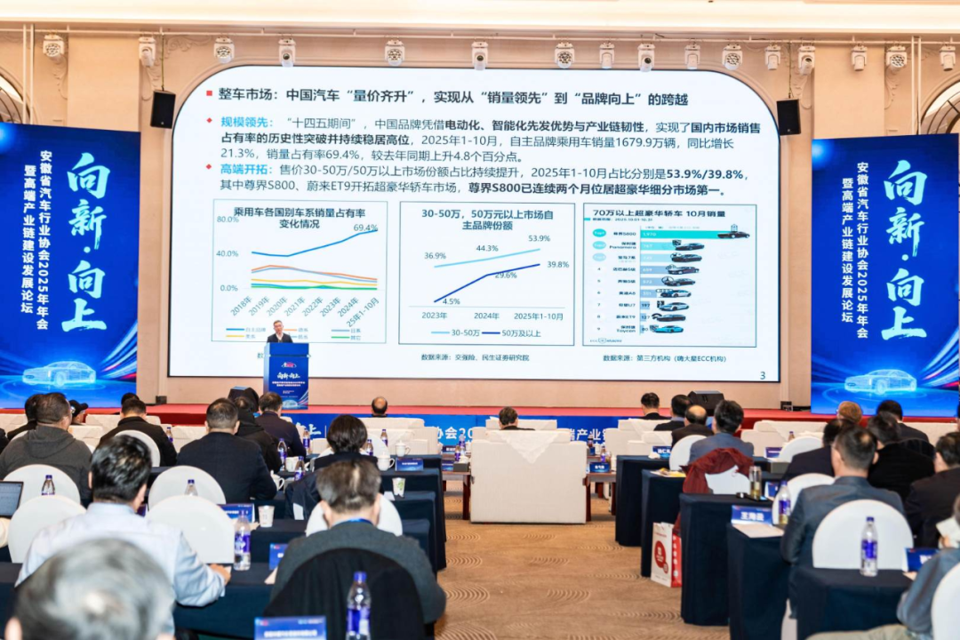 安徽省汽车行业协会会长石琴代表协会作《2025年安徽汽车行业协会年度工作报告》,国家信息中心正高级经济师徐长明作了题为《十五五汽车产业发展趋势》的主旨报告。
