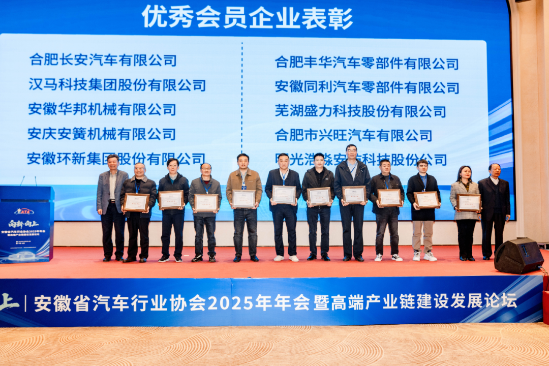 安徽省汽车行业协会在会上向在2025年度行业工作中成绩突出、表现优异的会员企业进行了集中表彰。安徽江淮汽车集团股份有限公司等二十家整车和零部件获得2025年度优秀会员企业荣誉称号。